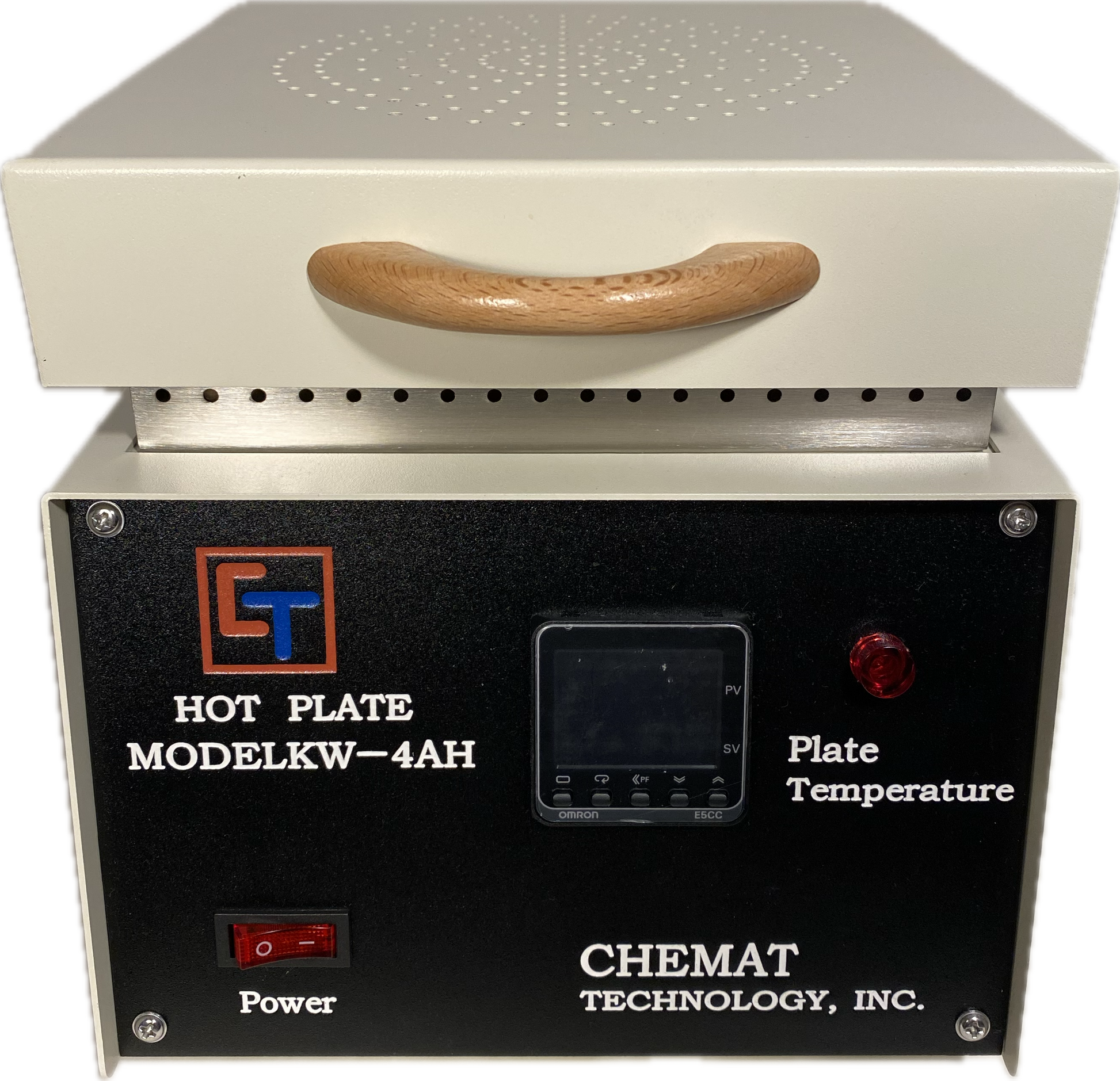 The KW-4AH compact hotplate has uniform temperature profile across the substrate to provide uniform heating the films and coatings. No skin effect occurs on the hotplate since the hotplate baking heats the substrate from the bottom up. This inside-out mechanism is especially for baking thick films since solvents in the films nearest the substrate are baked off before the film surface seals over. The KW-4AH hotplate increases throughput from a faster warmup of the substrate. Bake times will be measured in seconds, rather then minutes or hours, as in conventional ovens.